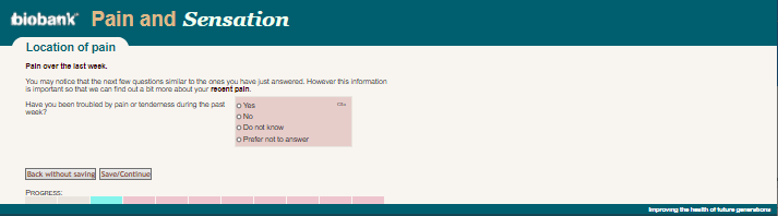 Online pain questionnaire screenshot of question C5a, showing appearance as seen by participants circa 2019.