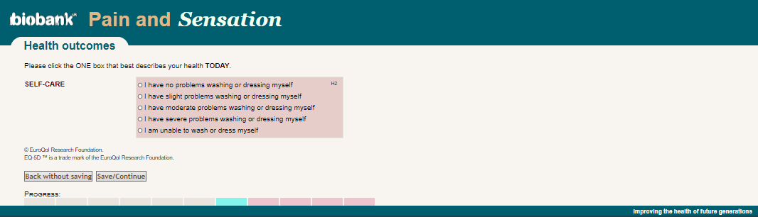 Online pain questionnaire screenshot of question H2, showing appearance as seen by participants circa 2019.