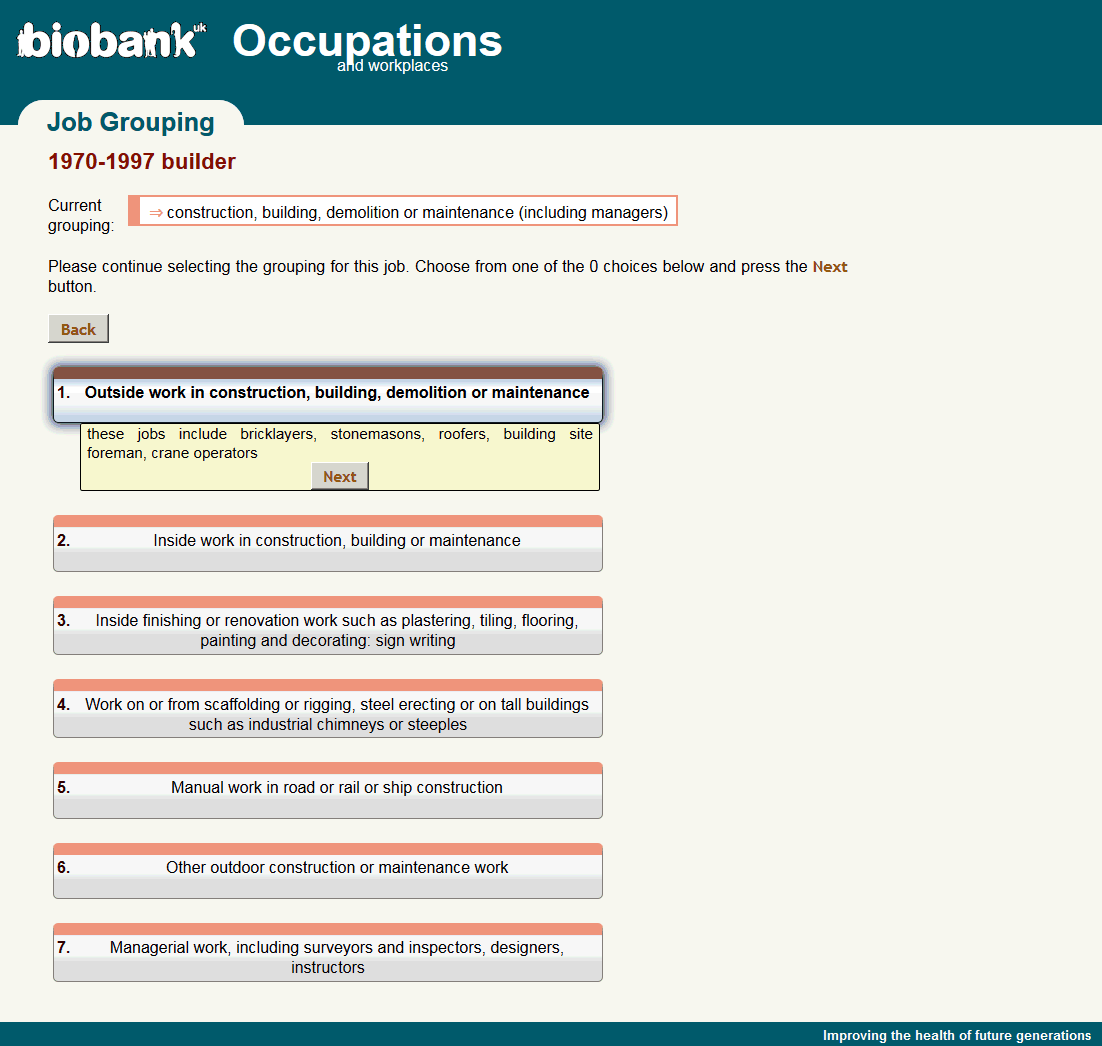 Before refining their job category users were shown supplementary information expanding on the sub-category criteria.