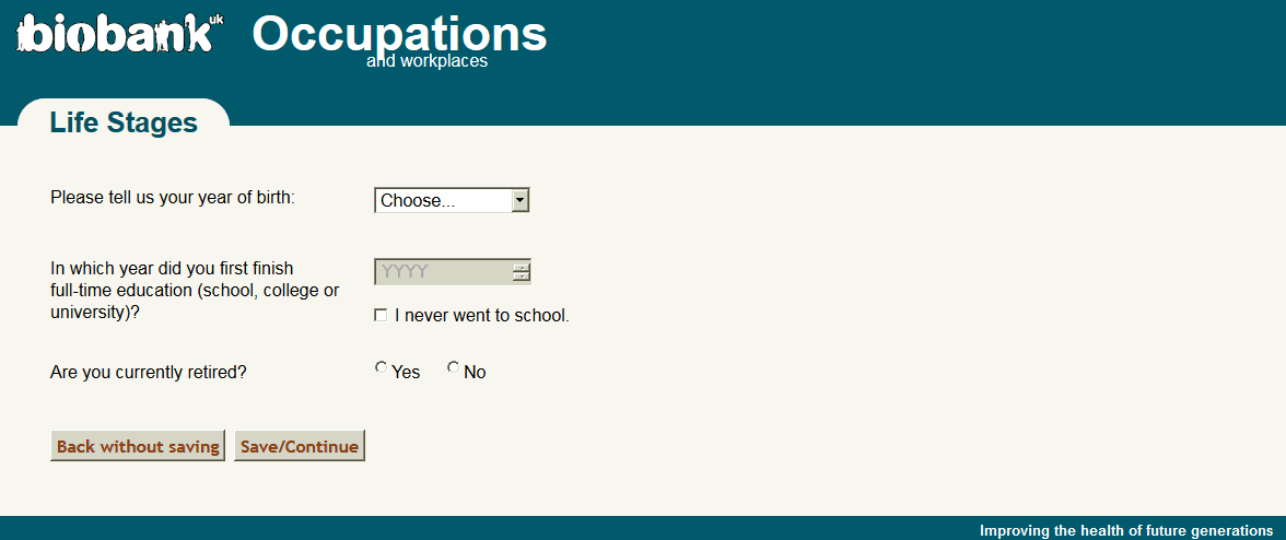 The first step in the occupational questionnaire was to define the start and end periods of possible employments.