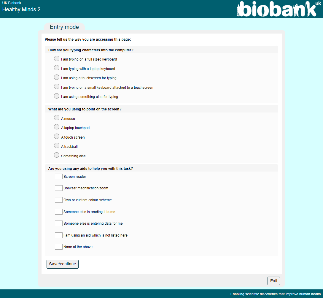 Screenshot of whole entry method questionnaire as presented in 2021.