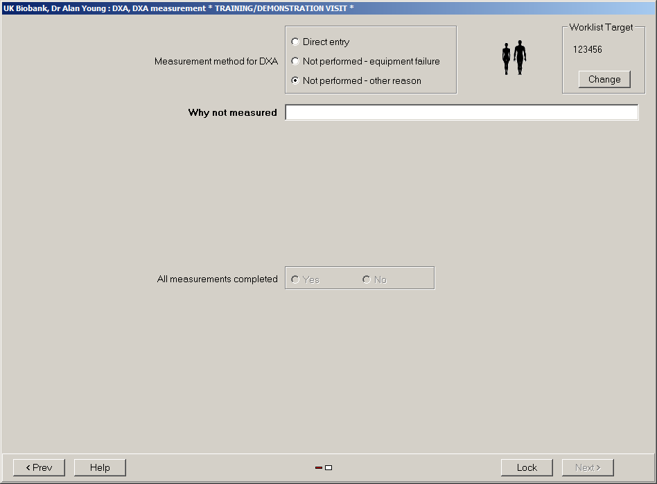 This shows the screen within the ICE system into which staff input a reason for the DXA measurement not being conducted.