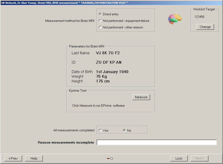 This shows the screen within the ICE system into which staff indicated why the brain MRI measurement was not fully completed.