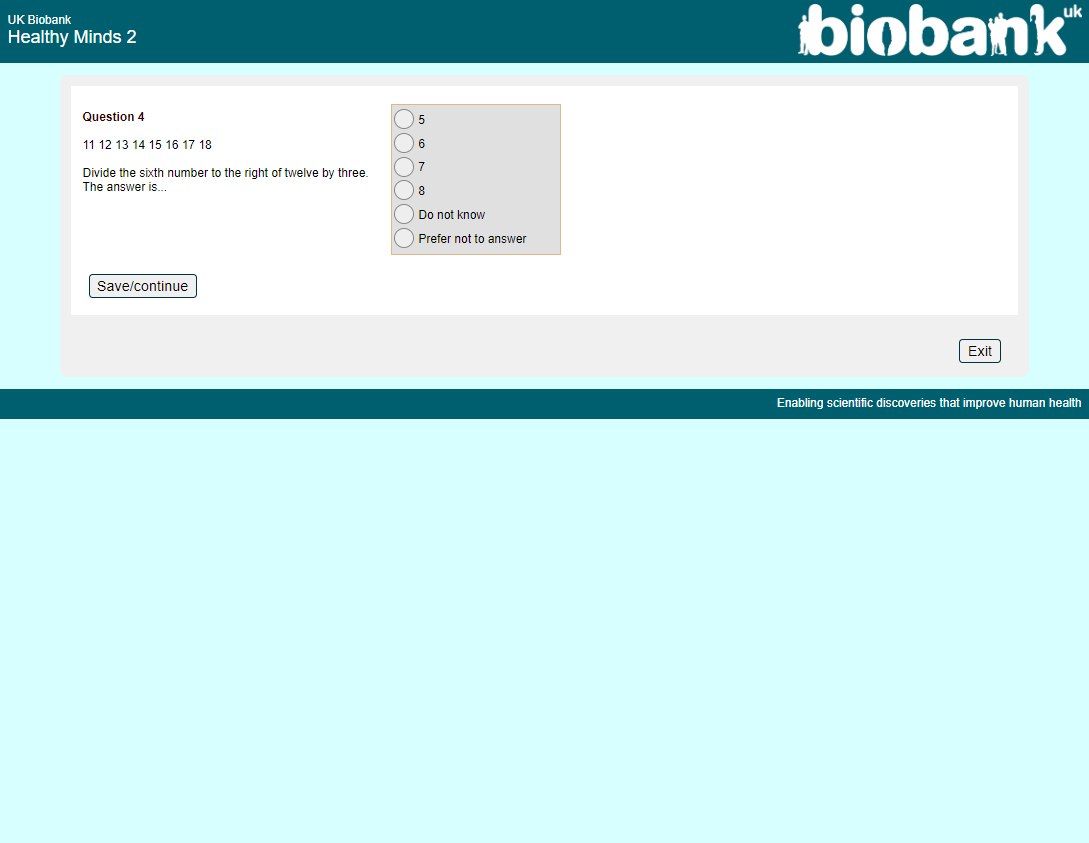 Fluid intelligence question 4 screen. Version shown is from 2021 implementation.