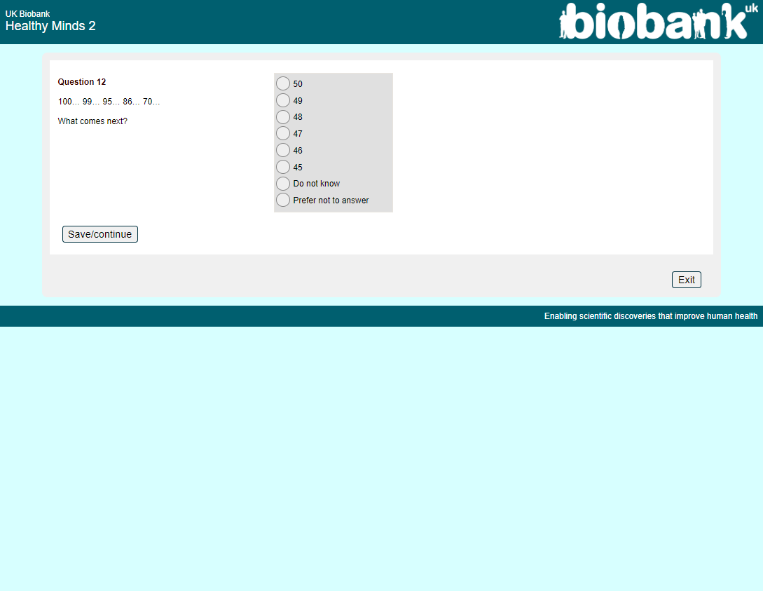 Fluid intelligence question 12 screen. Version shown is from 2021 implementation.
