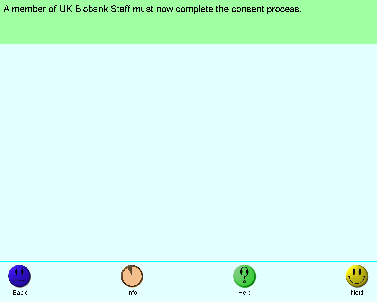 After signing their consent form the participant is asked to wait for a staff member to attend them.