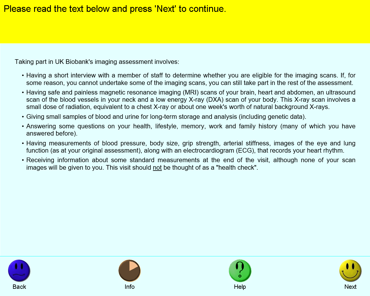 This is the first page of introductory information shown to participants during the imaging consent process.