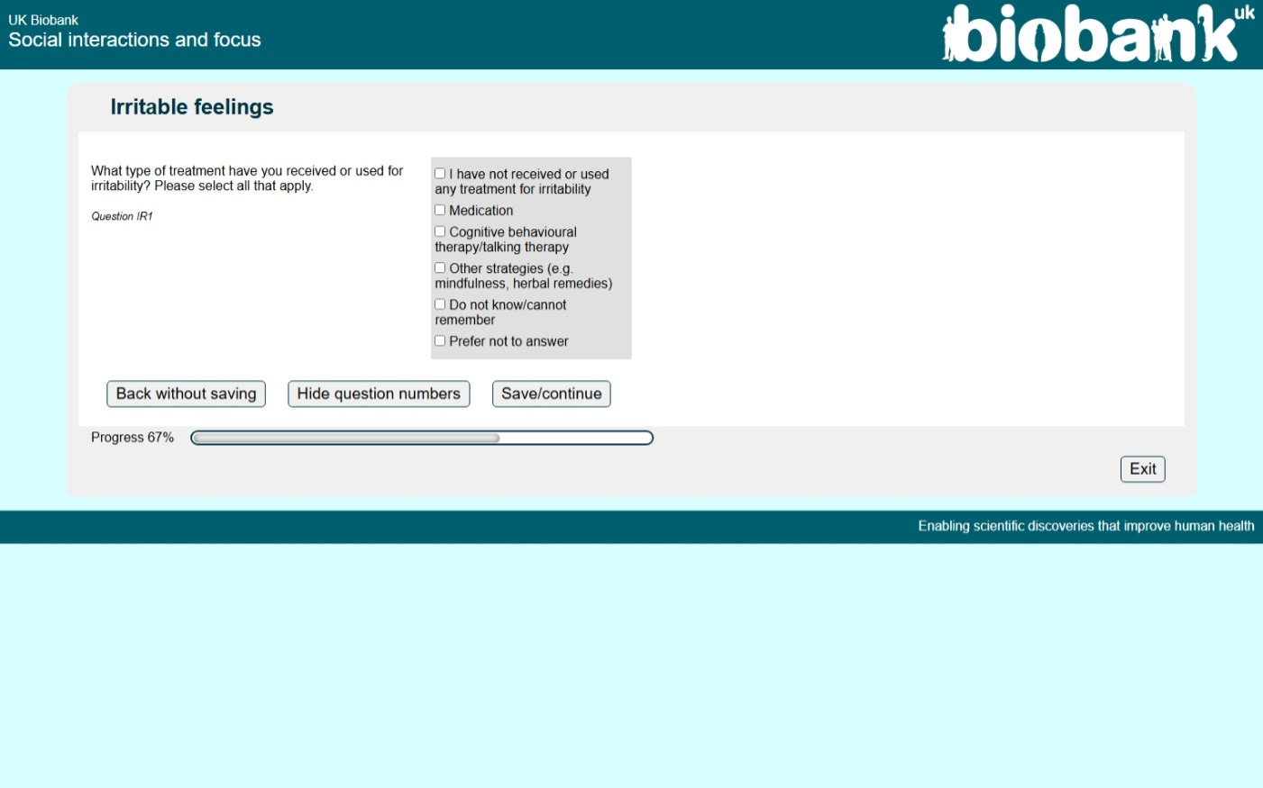 Online Social Interactions and Focus questionnaire screenshot IR1, showing appearance as seen by participants circa 2023