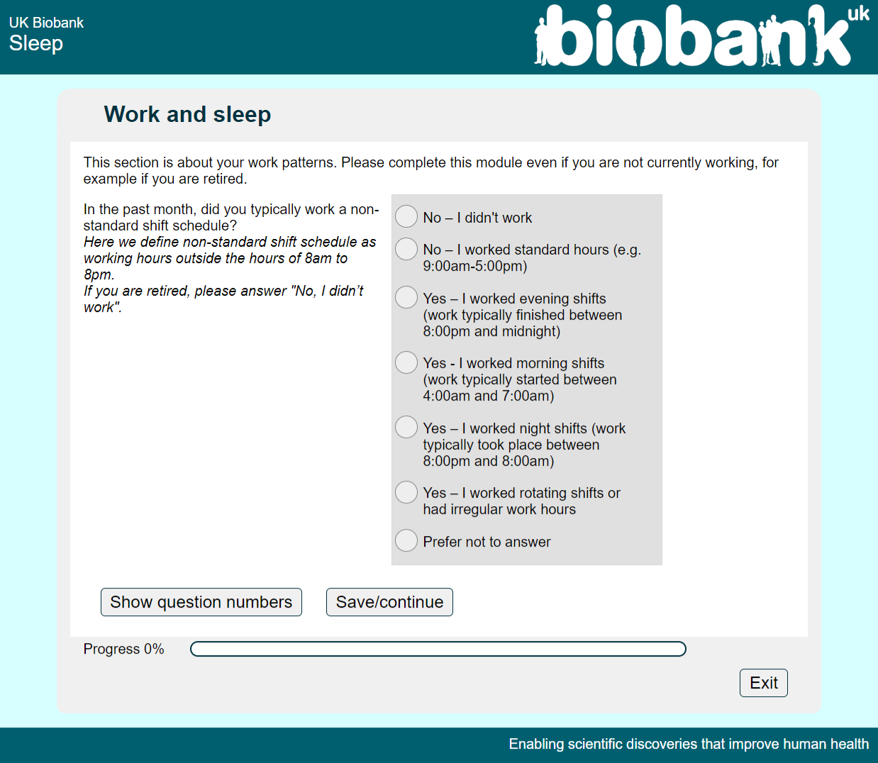 Online sleep questionnaire screenshot WaS1_ALT, showing appearance as seen by participants circa 2022