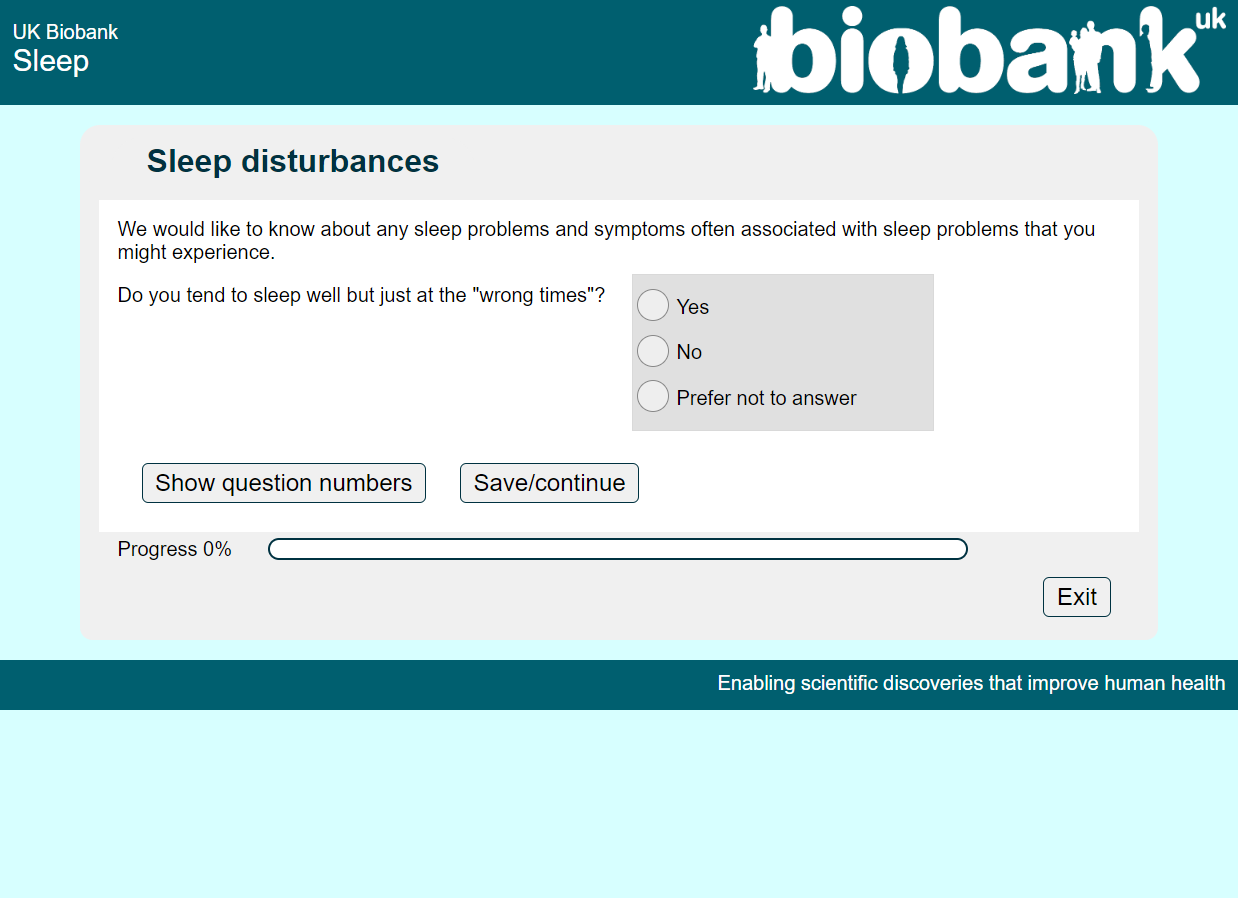 Online sleep questionnaire screenshot CRD1, showing appearance as seen by participants circa 2022