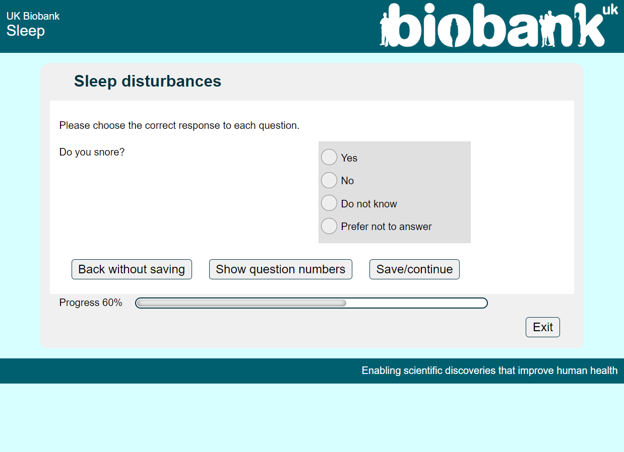 Online sleep questionnaire screenshot Apn1, showing appearance as seen by participants circa 2022