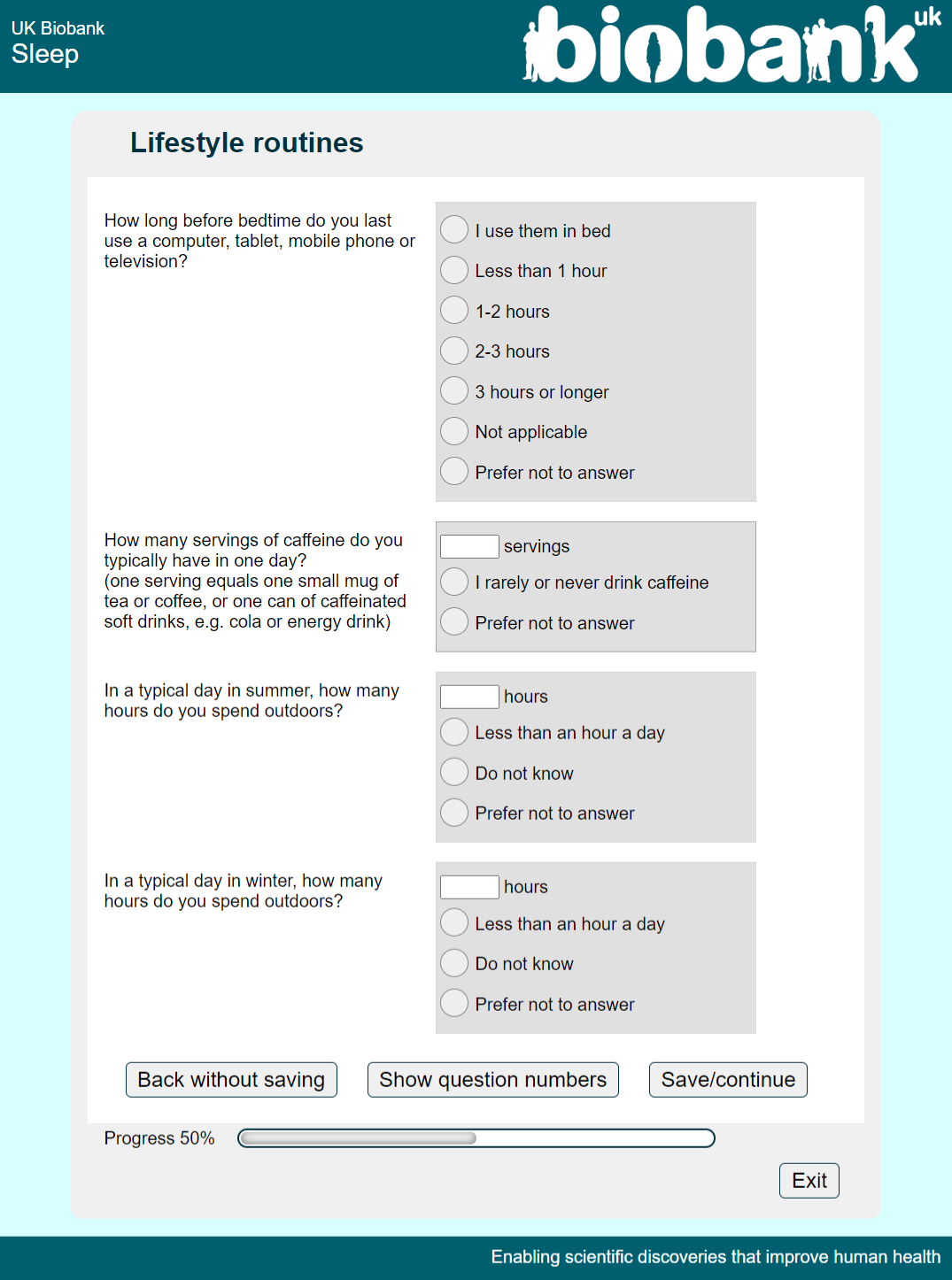 Online sleep questionnaire screenshot LR2-LR3, showing appearance as seen by participants circa 2022