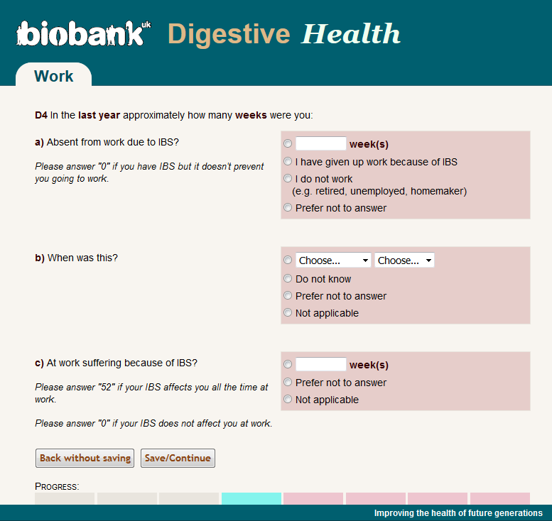 Online digestive health screenshot of questions d4a-d4c, showing appearance as seen by participants using a large-screen web-browser circa 2017.