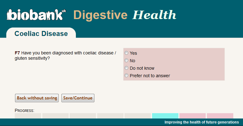Online digestive health screenshot of question f7, showing appearance as seen by participants using a large-screen web-browser circa 2017.
