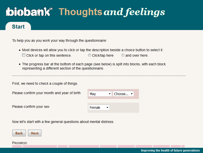 Screenshot of web-page for completed identity confirmation from the UK Biobank on-line "Thoughts and Feelings" mental health questionnaire
