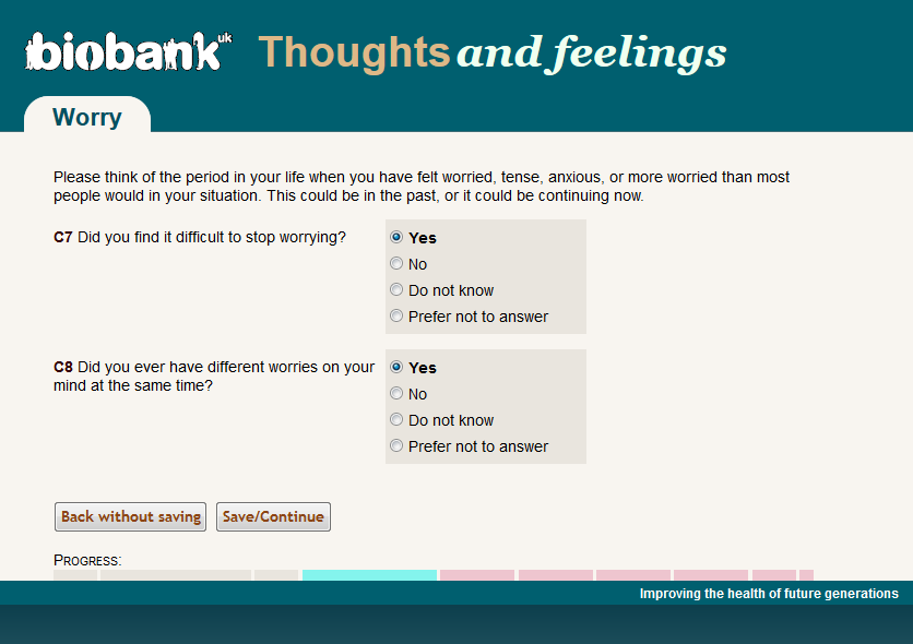 Screenshot of web-page for type of worry (section 2/3) from the UK Biobank on-line "Thoughts and Feelings" mental health questionnaire