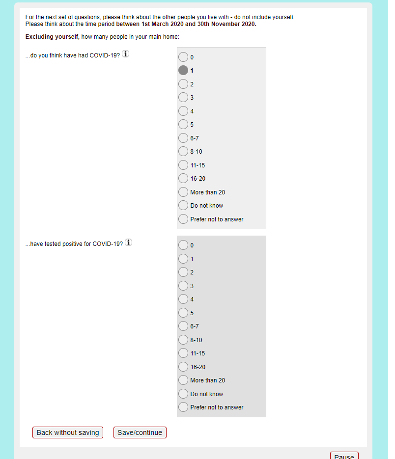 Online SARS-CoV-2 coronavirus exposure questionnaire screenshot of question B6.3