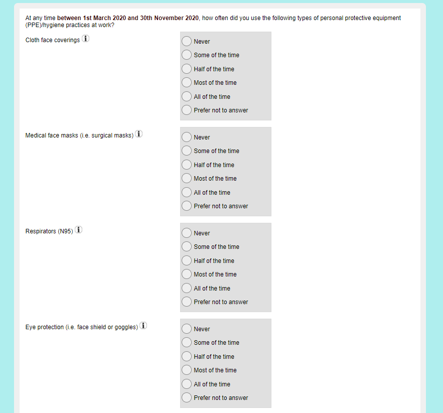 Online SARS-CoV-2 coronavirus exposure questionnaire screenshot of question C8.1-C8.4