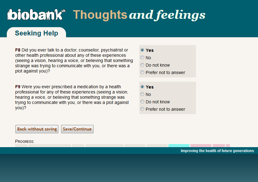 Screenshot of web-page for remedies attempted for unusual experiences from the UK Biobank on-line "Thoughts and Feelings" mental health questionnaire
