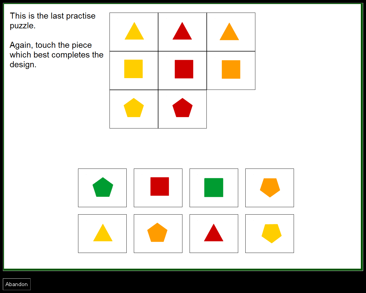 This was a practise question allowing the participant to explore the user interface by selecting an item. The participant was given three practise questions of increasing complexity - this is the third and last of them.