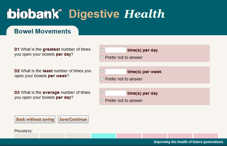 Online digestive health screenshot of questions d1-3, showing appearance as seen by participants using a large-screen web-browser circa 2017.